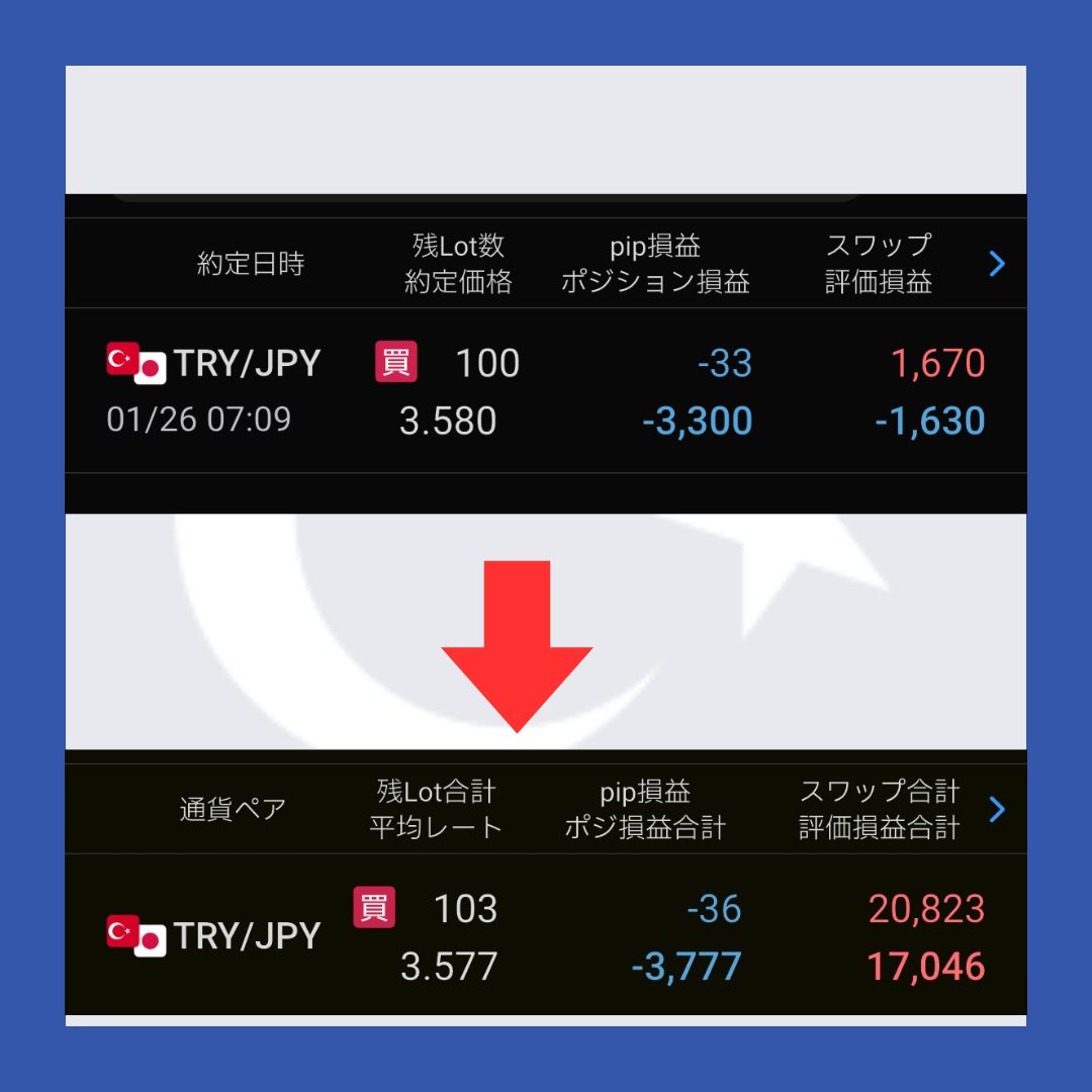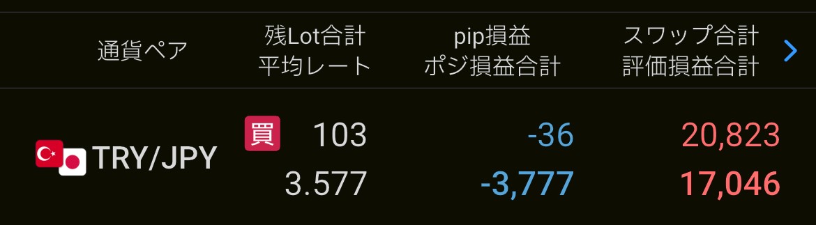 トルコリラ円FXのポジションを見てみましょう。(2026年4月17日更新)