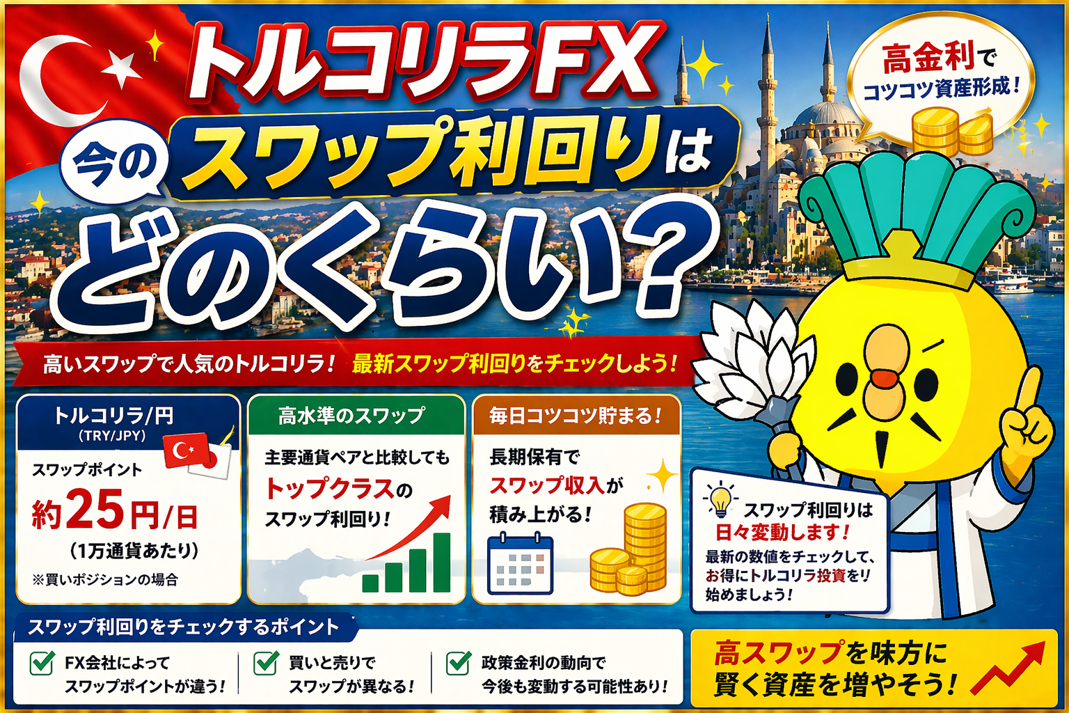 トルコリラFX今のスワップ利回りはどのくらい?