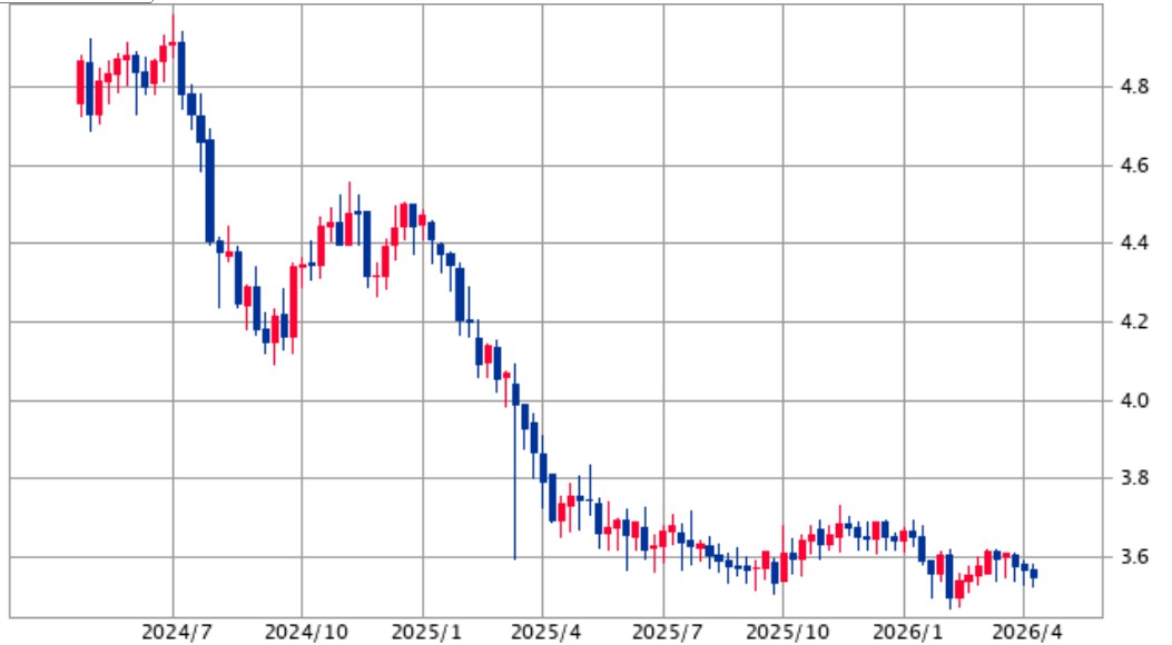 3.5円台からはなぜか底堅く、安定して推移しています。