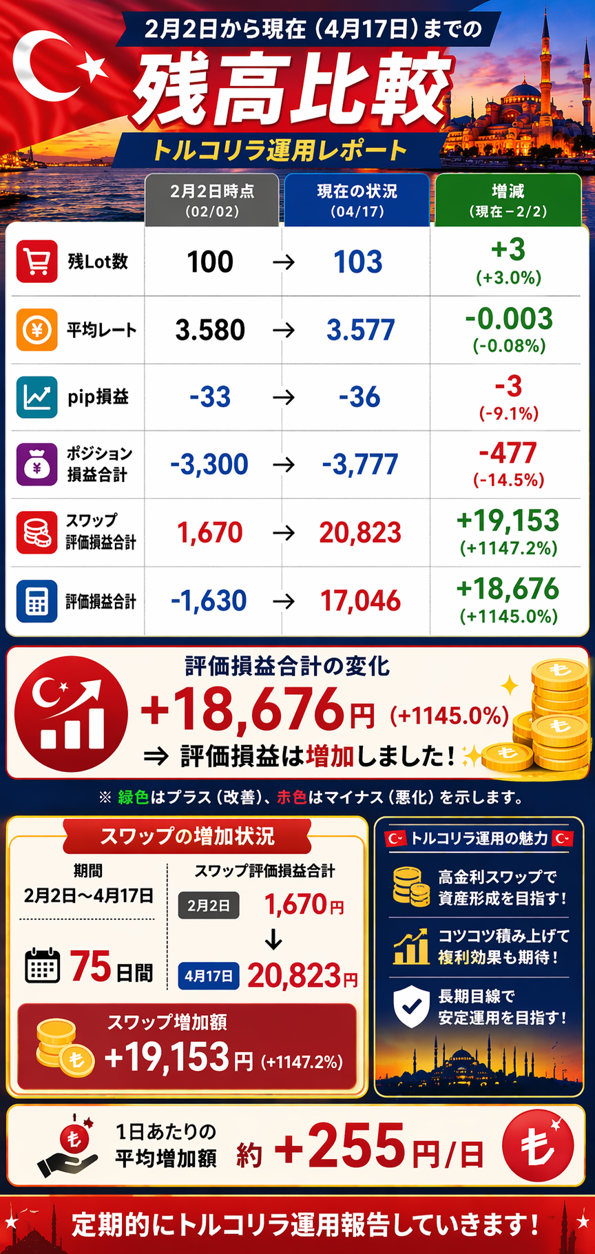 トルコリラスワップ投資運用報告を簡単にさせていただきます。