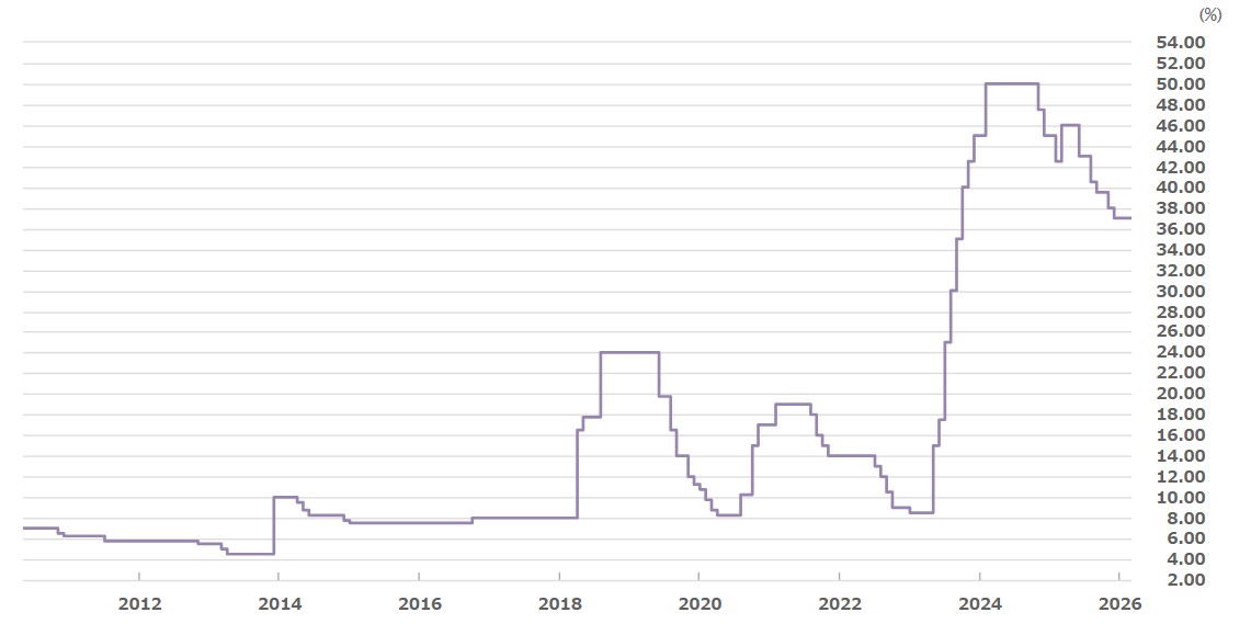 ・政策金利:37.0%